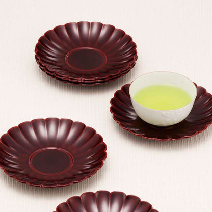 溜 菊彫茶托 五客セット
